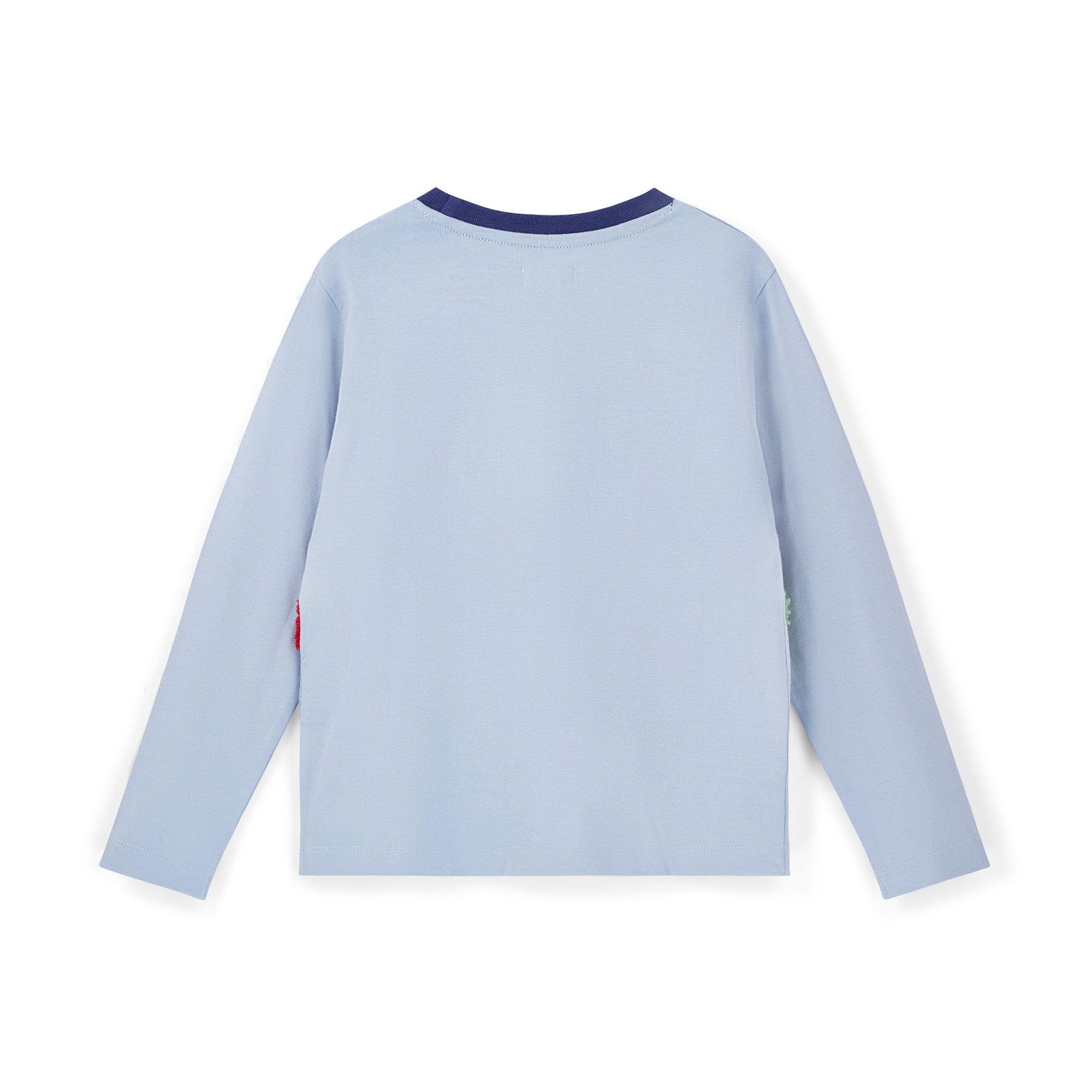 Full of charm and crafted with care, our Light blue roaming dinosaur applique top is a joyful addition to any little one's wardrobe. Made from 100% GOTS certified organic Cotton, its beautifully soft, breathable, and gentle on delicate skin. Featuring a playful roaming dinosaur applique on a calming light blue base, its designed to spark imaginations while offering all-day comfort. Ethically produced this planet-friendly piece is perfect for layering, mixing and matching. A timeless top made to be loved, worn and passed on.